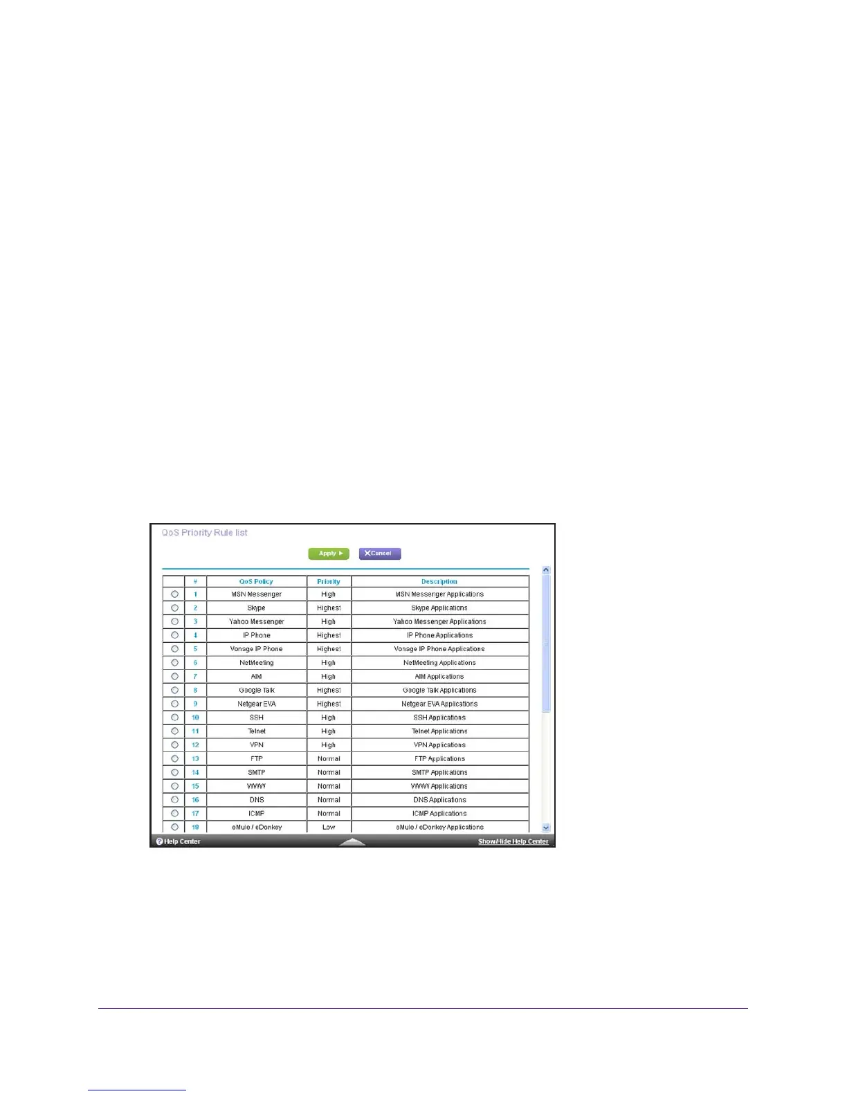 QoS Policy table in the QoS Setup screen. For convenience, the QoS Policy table lists many