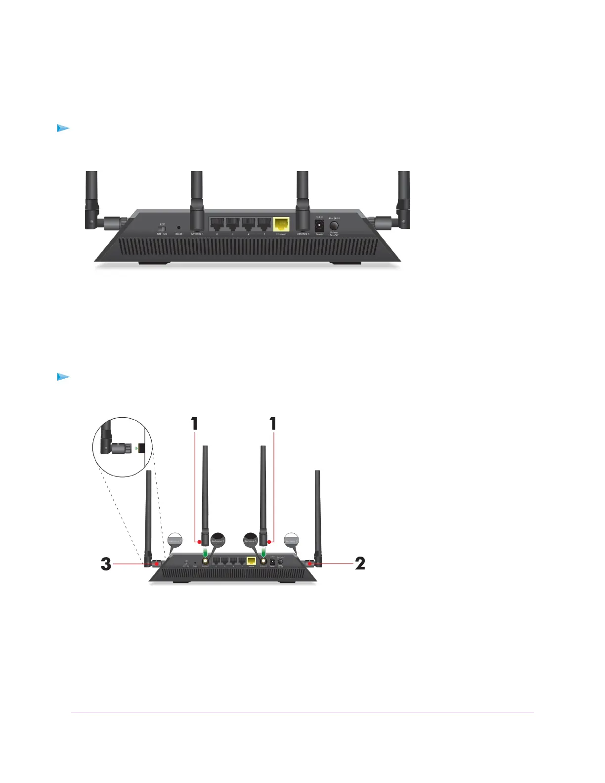 1. To determine where to attach the antennas, match the labels on the antennas with the labels on the router.