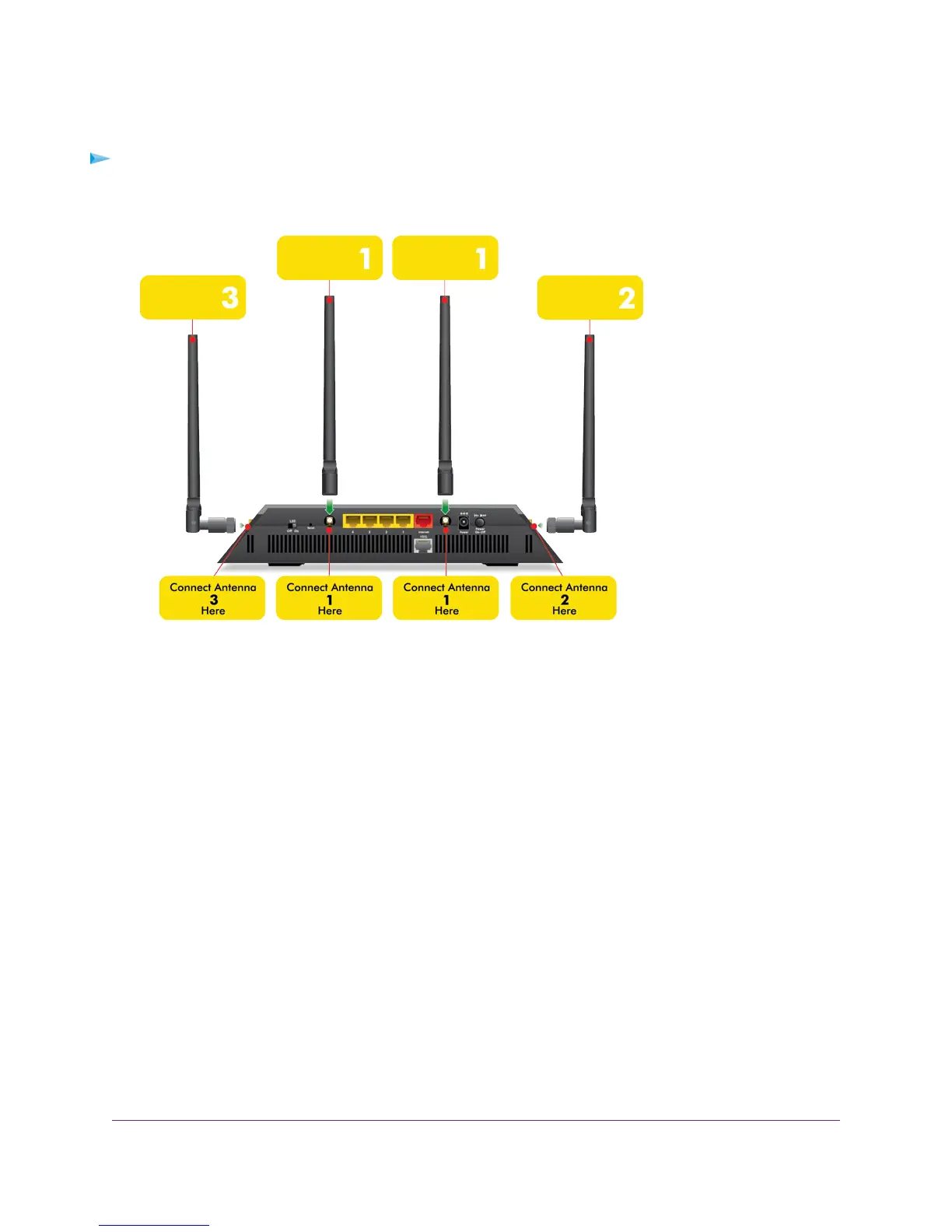 1. To determine where to attach the antennas, match the labels on the antennas with the labels on the modem