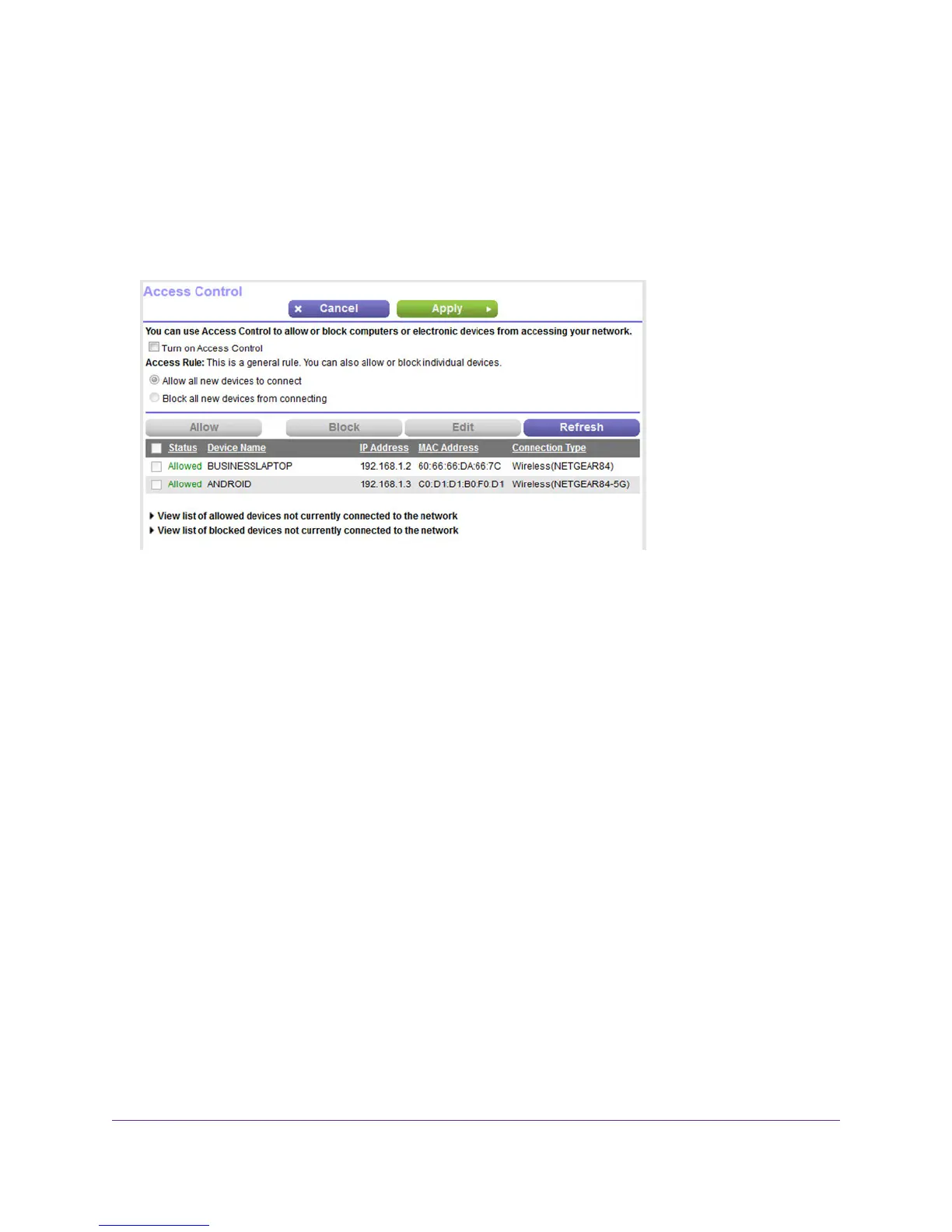 The access rule does not affect previously blocked or allowed devices. It applies only to devices joining your