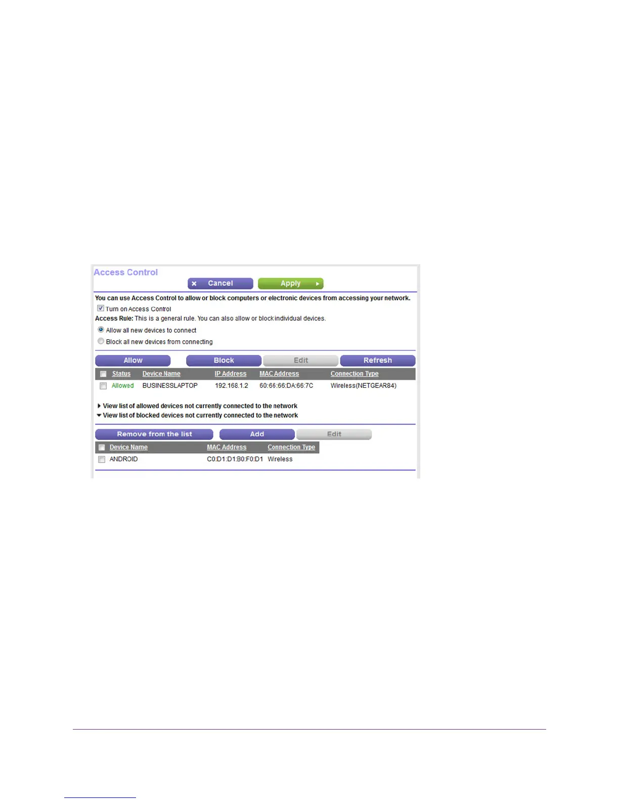 A table displays the detected device name, MAC address, and connection type of the devices that are not