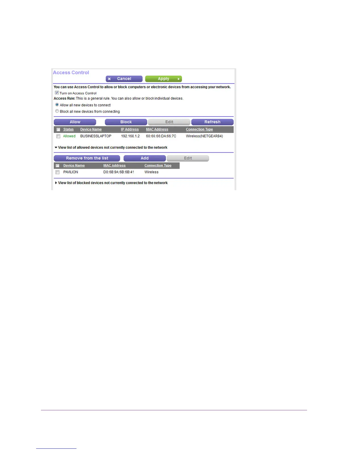 A table displays the detected device name, MAC address, and connection type of the devices that are not