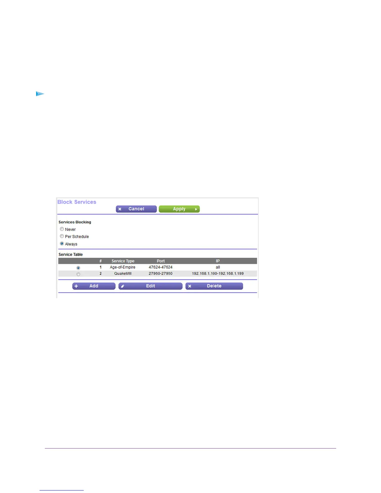 The previous figure shows two rules in the Service Table.