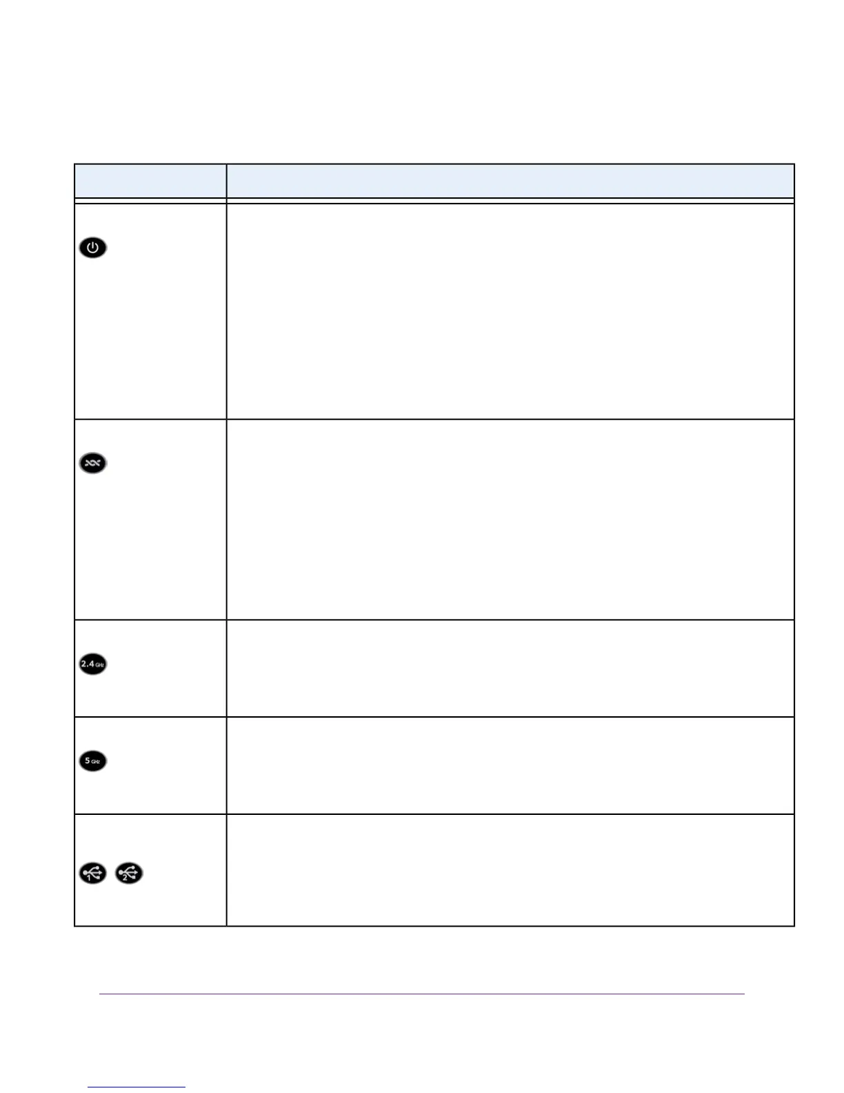 • Blinking white.The modem router is sending or receiving WiFi traffic over the 2.4 GHz radio.
