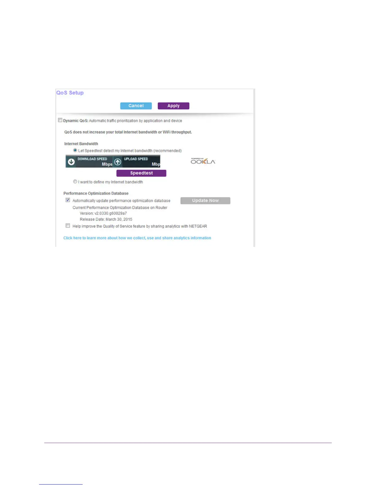 The pop-up window closes and the Help improve the Dynamic QoS feature by sharing analytics with