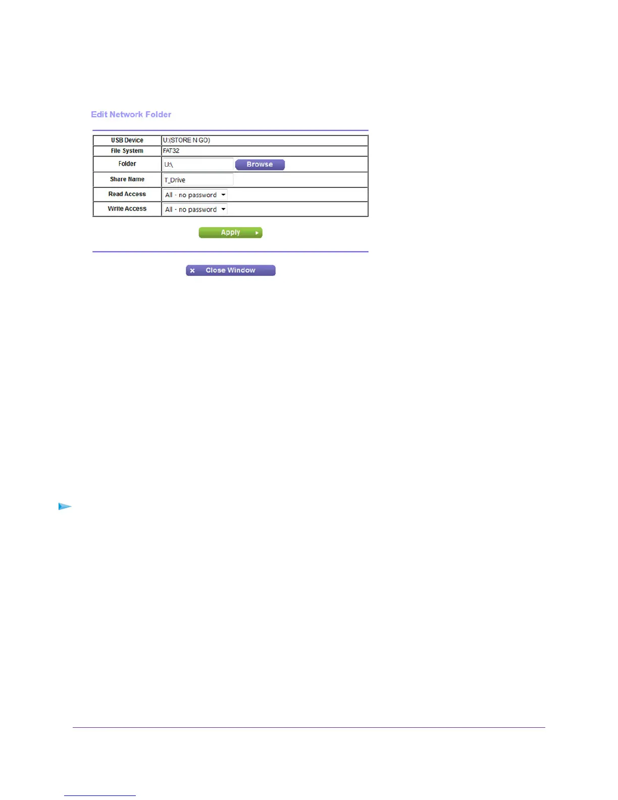 For more information about the settings, see Add a Network Folder on a Storage Device on page 159.