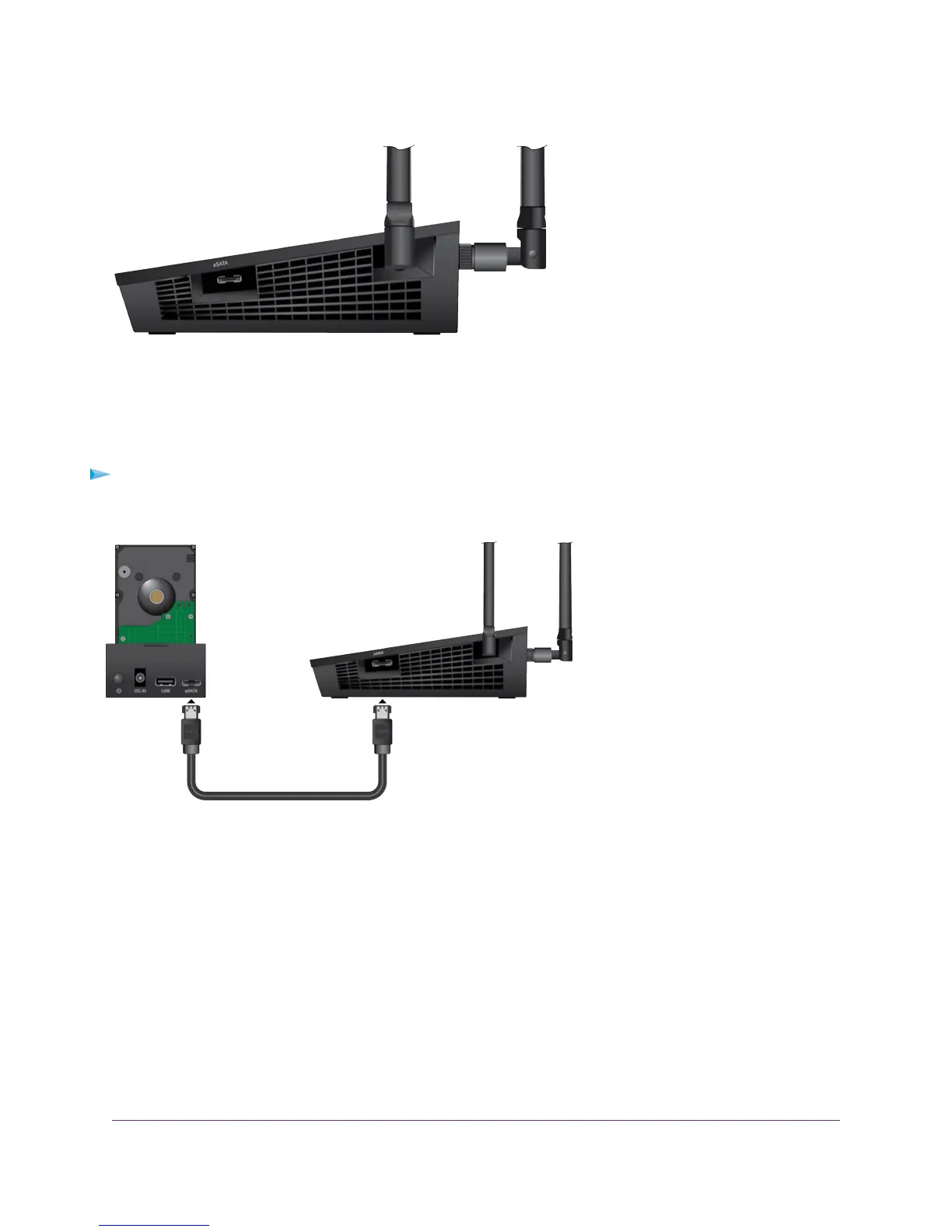 • Use an eSATA cable to connect your device to the eSATA port on the side of the modem router as shown.