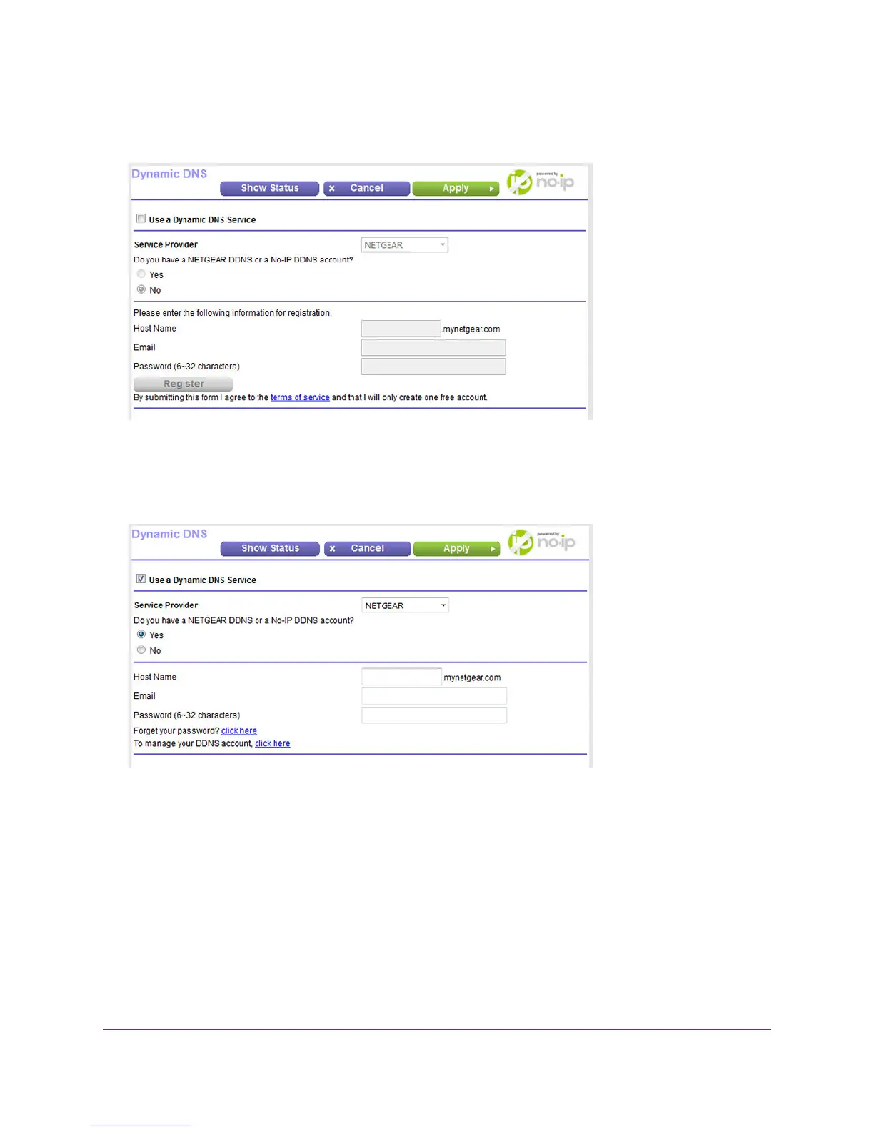 • For a No-IP or Dyn account, in the User Name field, enter the user name for your account.