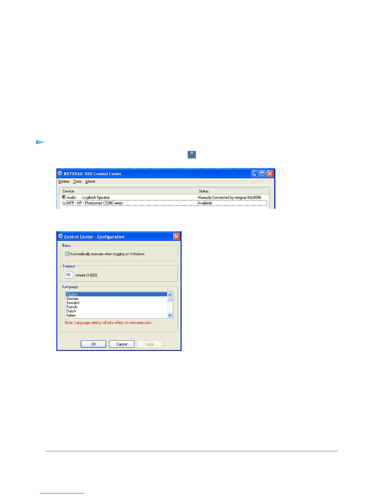 Click the NETGEAR USB Control Center icon .