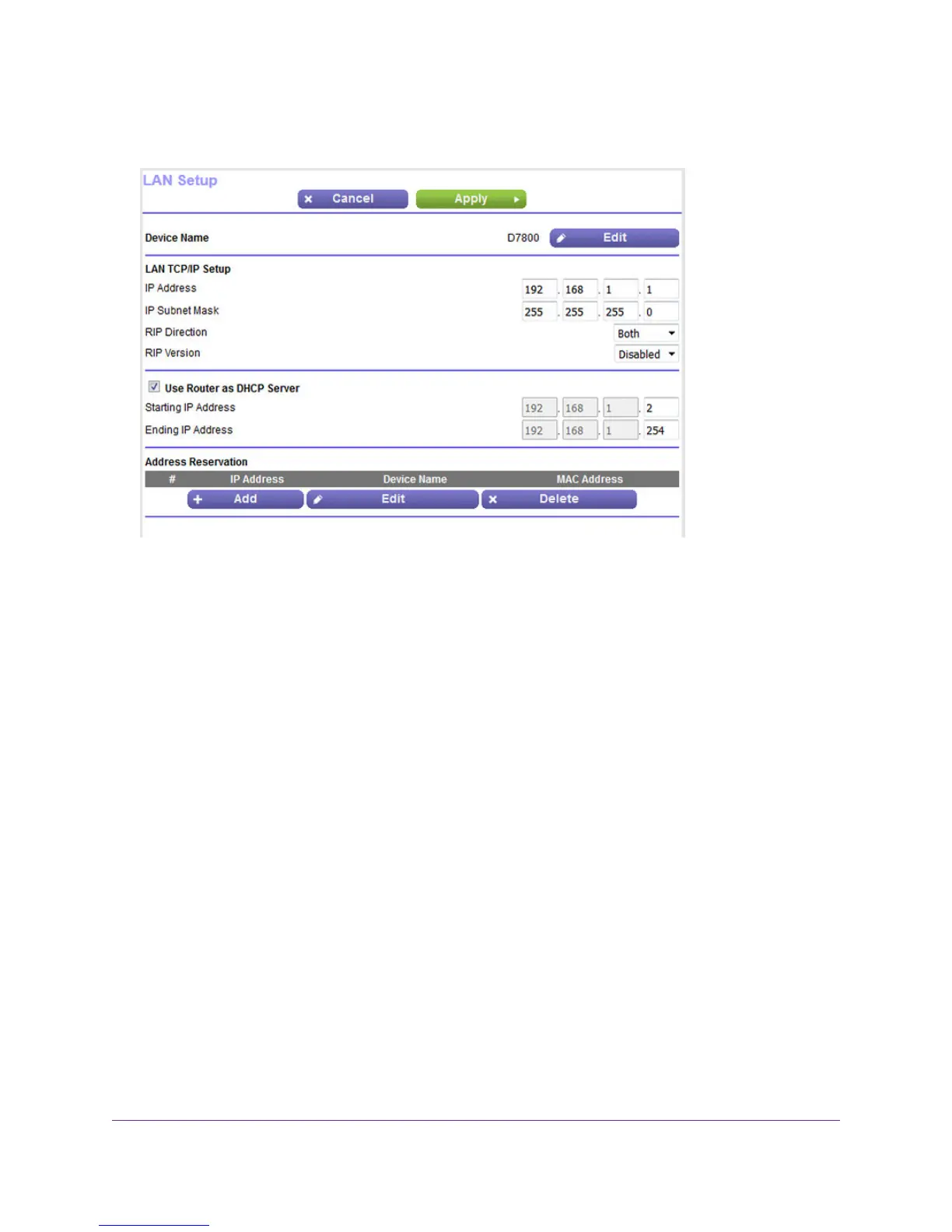 You can assign a reserved IP address to a computer or server that requires permanent IP settings.