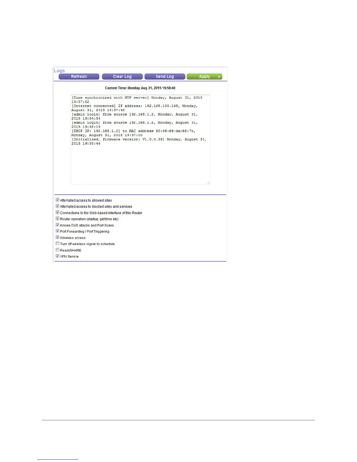The modem router emails the logs to the address that you specified (see Set Up Security Event Email Notifications