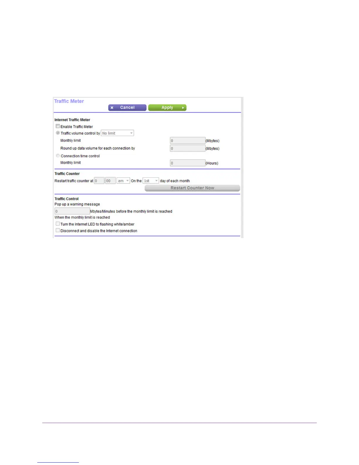 If you enabled the traffic meter (see Start the Traffic Meter Without Traffic Volume Restrictions on page 237), you