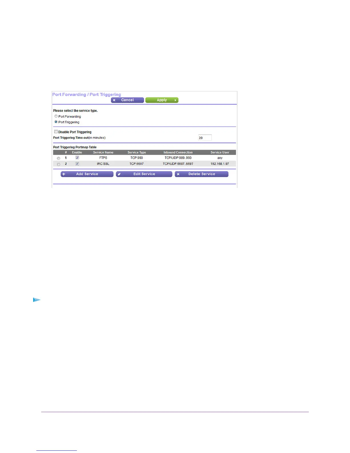 The previous figure shows two port triggering rules.