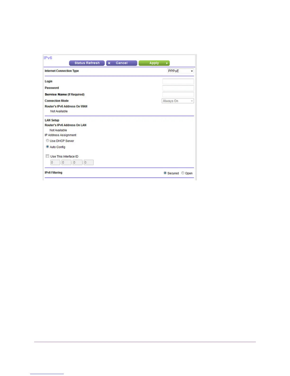 by the underline (_) under the IPv6 address. If no address is acquired, the field displays Not Available.