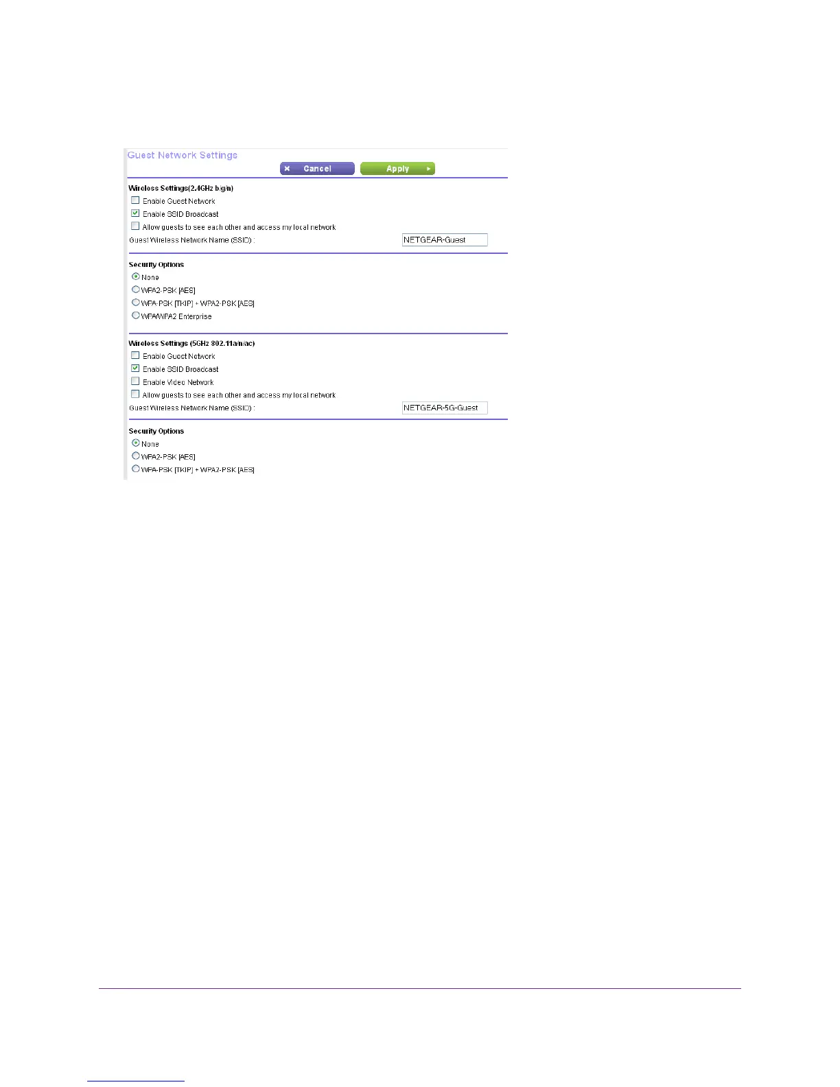 • NETGEAR-Guest is for the 2.4 GHz WiFi band.