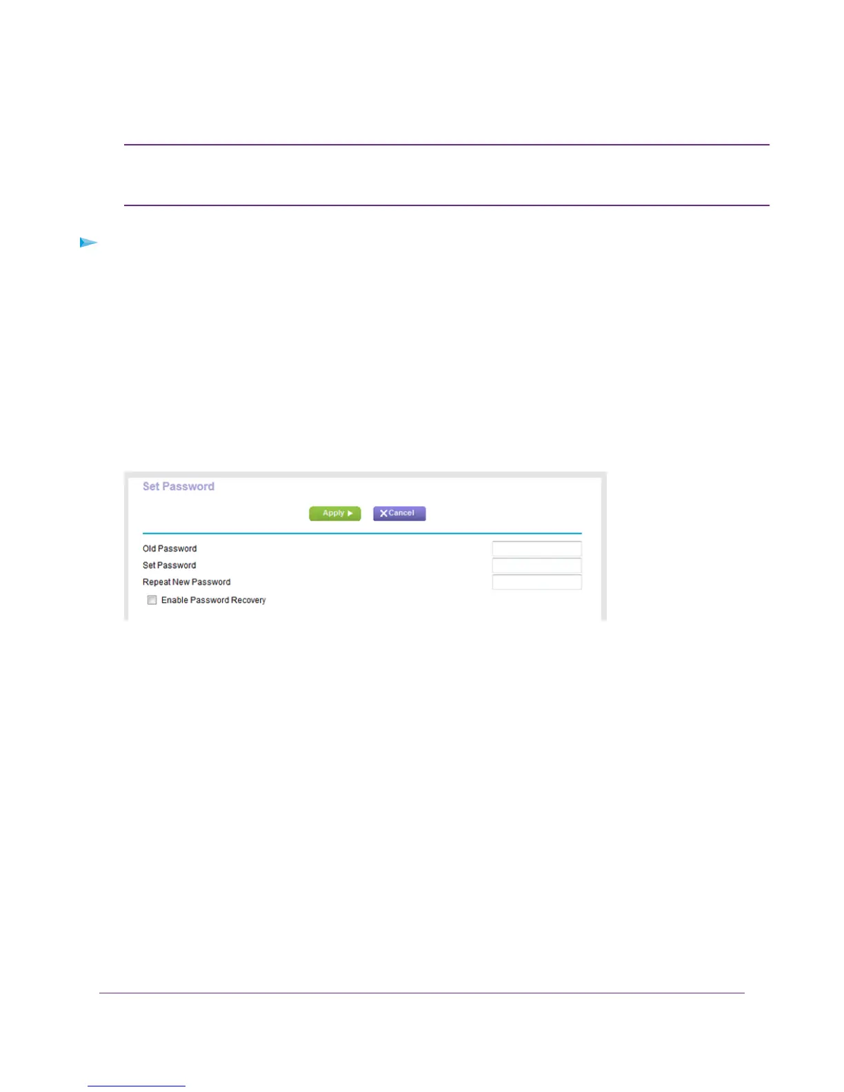 We recommend that you enable password recovery if you change the password for the router user name admin.