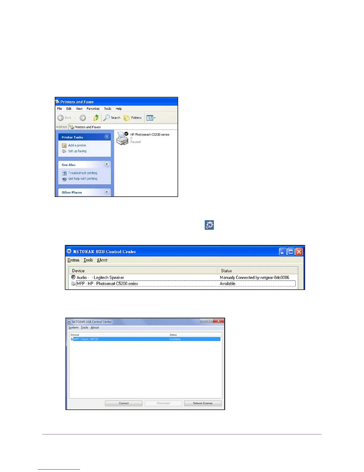 1. Click the NETGEAR USB Control Center icon .