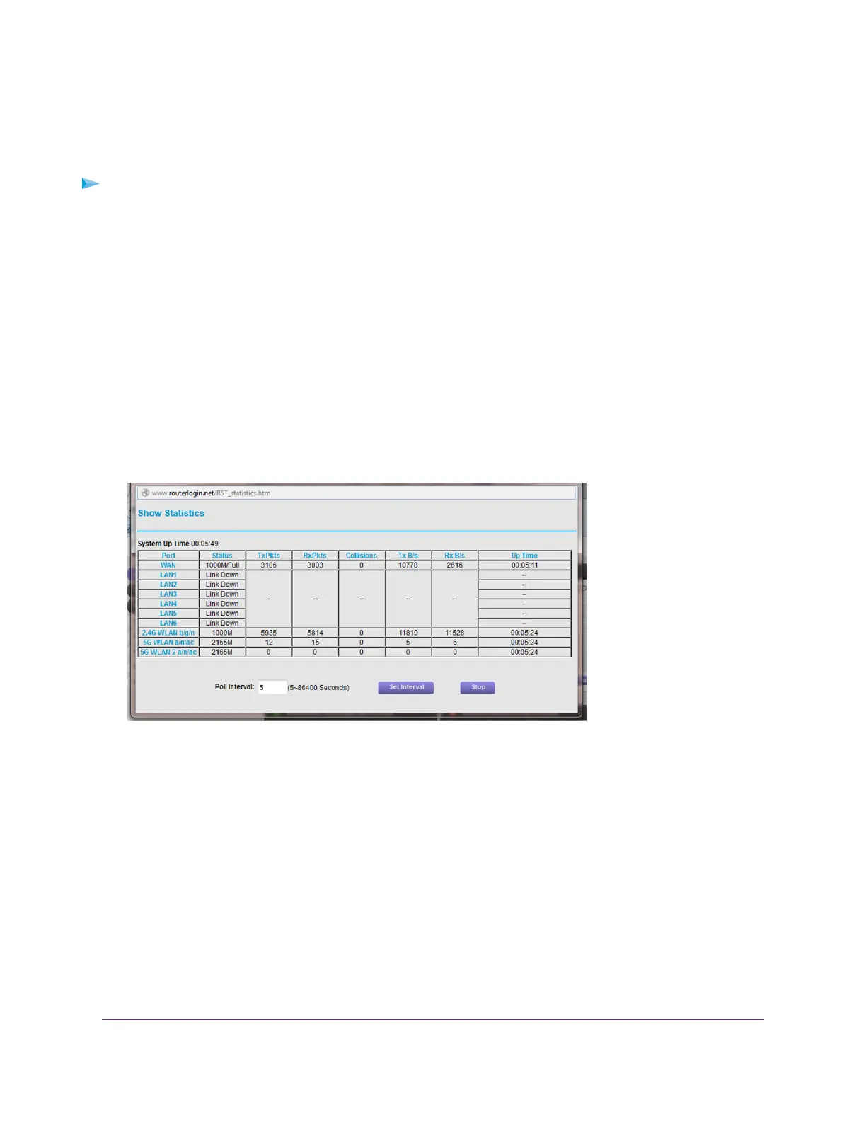 5. In the Internet Port pane, click the Show Statistics button.