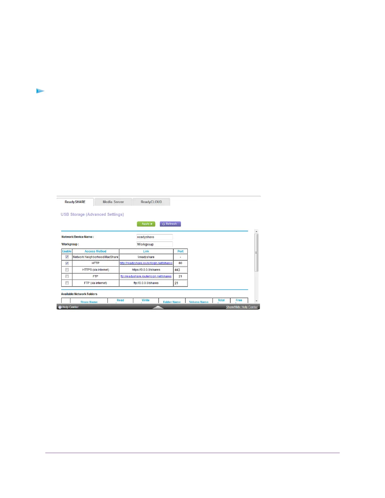 4. Select ADVANCED > USB Functions > ReadySHARE Storage.