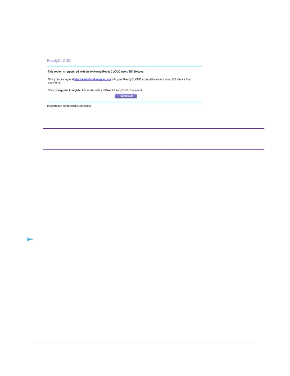 The ReadyCLOUD page displays the router that you registered and the contents of the USB storage device that