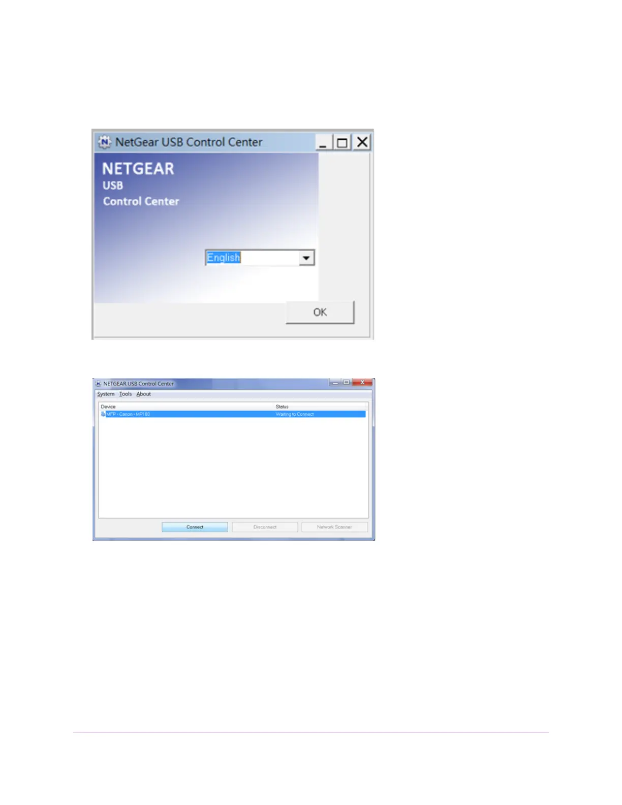 After the InstallShield Wizard completes the installation, the NETGEAR USB Control Center prompts you to