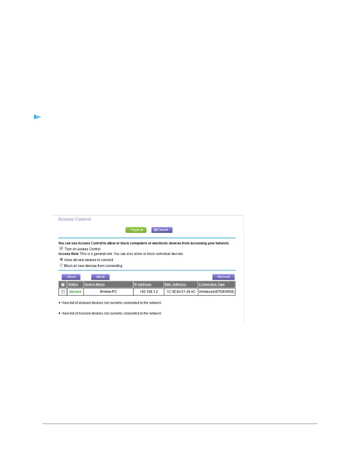 6. Click the View list of allowed devices not currently connected to the network link.