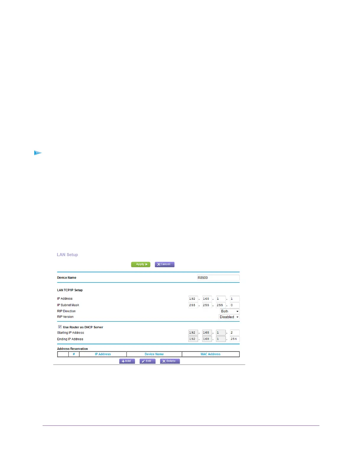 These addresses must be part of the same IP address subnet as the router’s LAN IP address. Using the default
