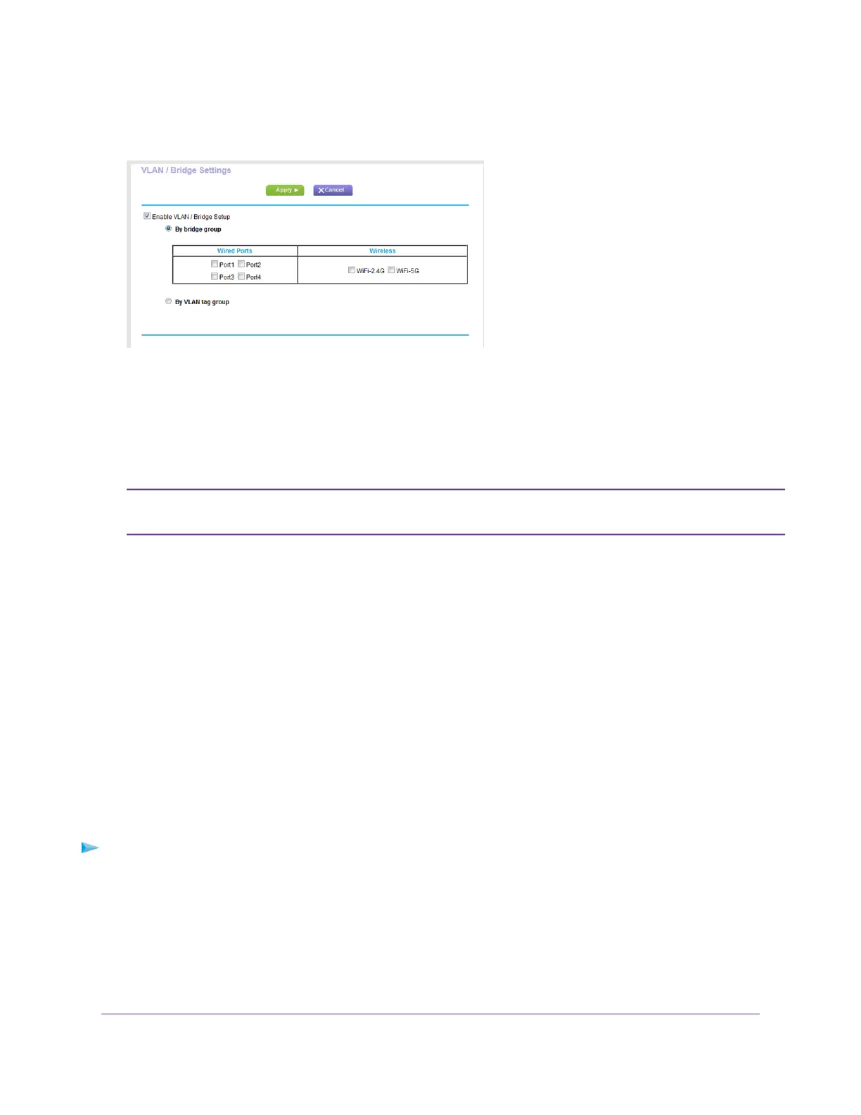 You can add VLAN tag groups to a bridge and assign VLAN IDs and priority values to each VLAN tag group.