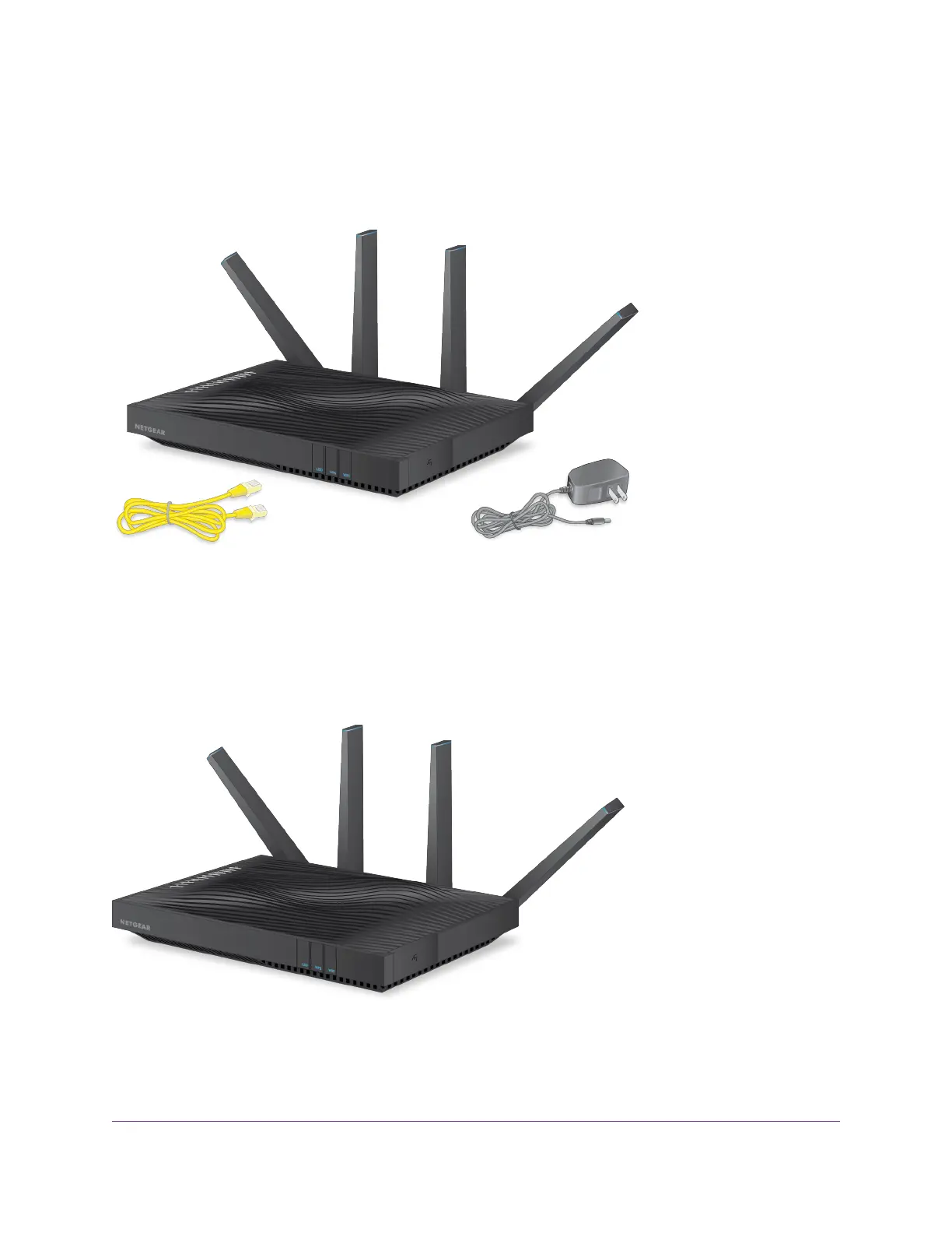 Your package contains the Nighthawk X8 AC5300 Tri-Band WiFi Router, the power adapter, and a yellow Ethernet