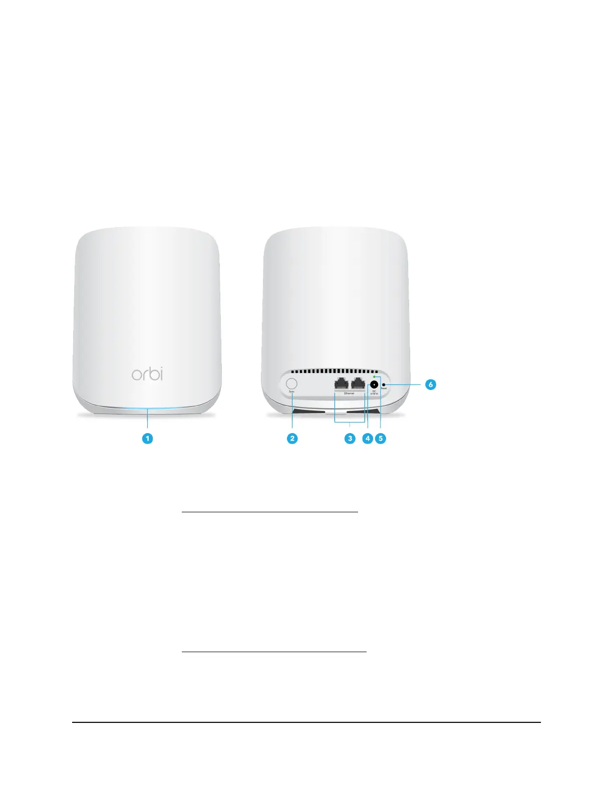 The following figures shows the Orbi satellite hardware features.