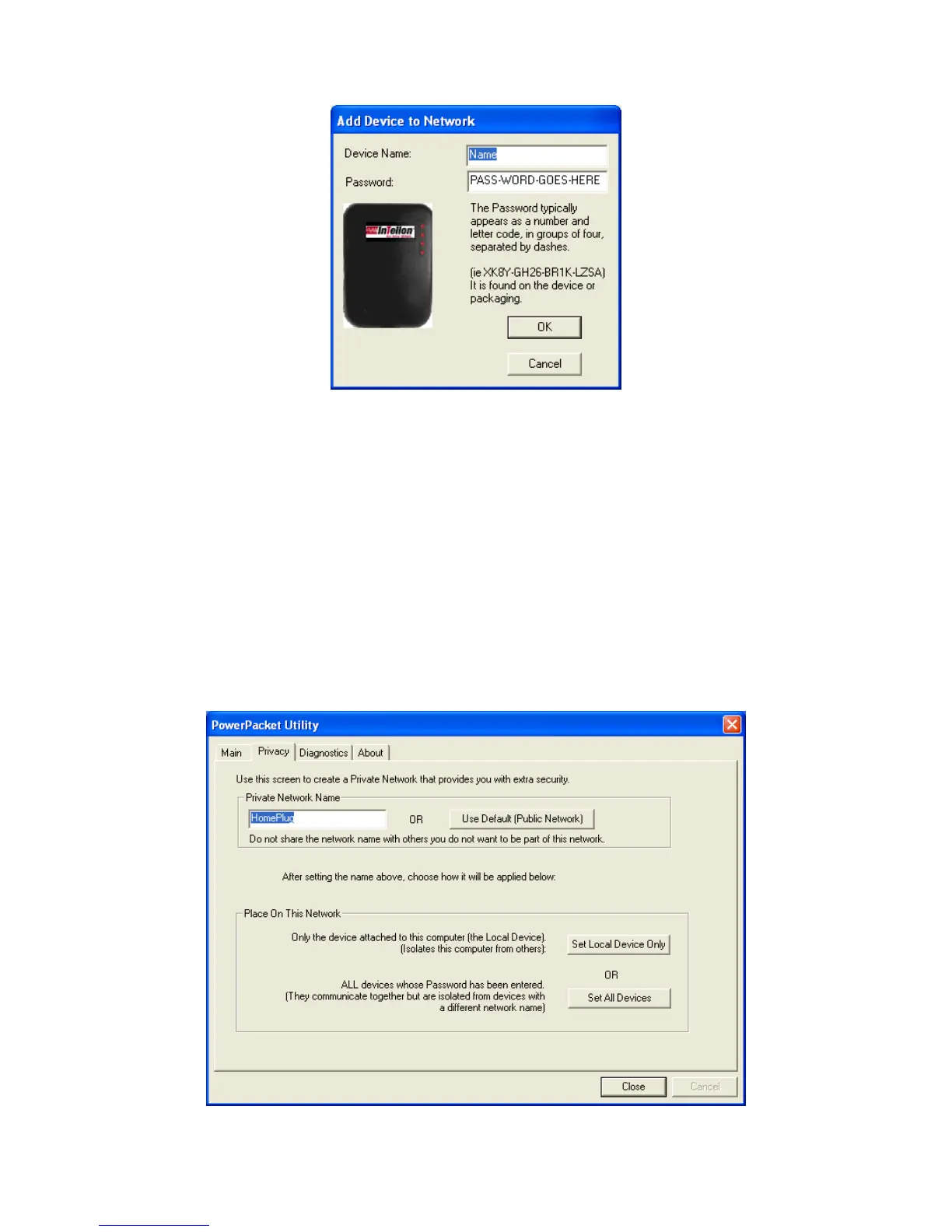HomePlug devices connected to the Powerline network. By default, the utility