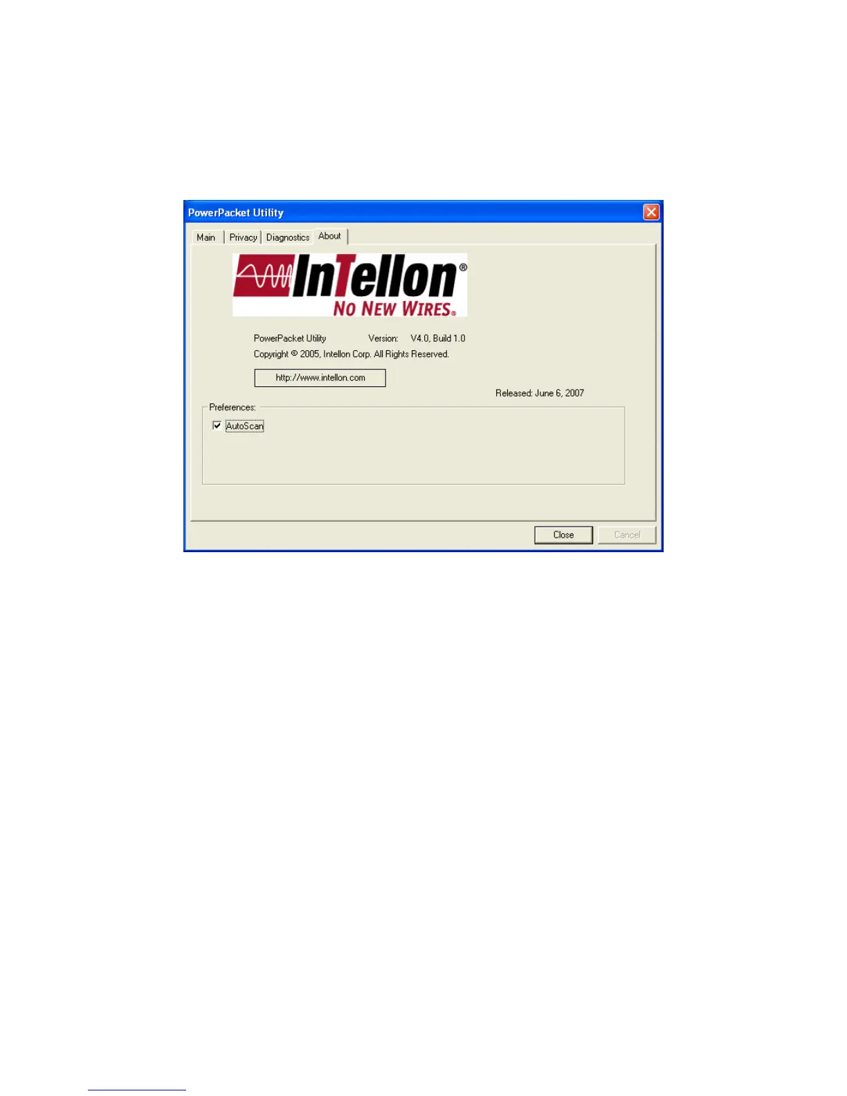 The About screen shows the software version information. You can select
