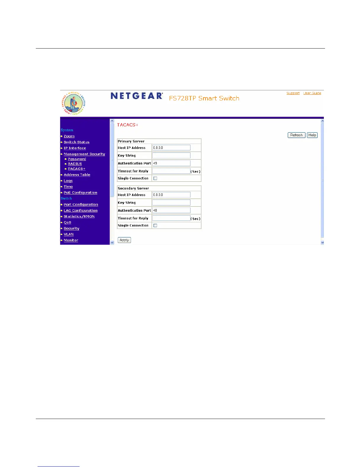 1. Click System > Management Security > TACACS+. The TACACS+ Page opens: