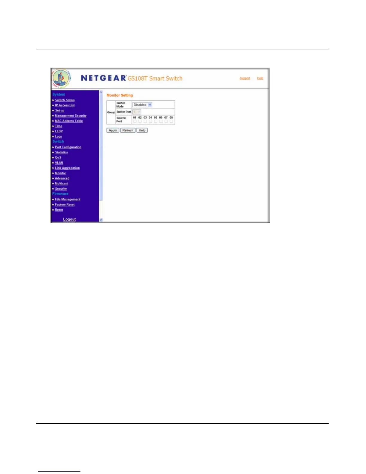 3. Sniffer Port: Select from 1 to 8 ports.
