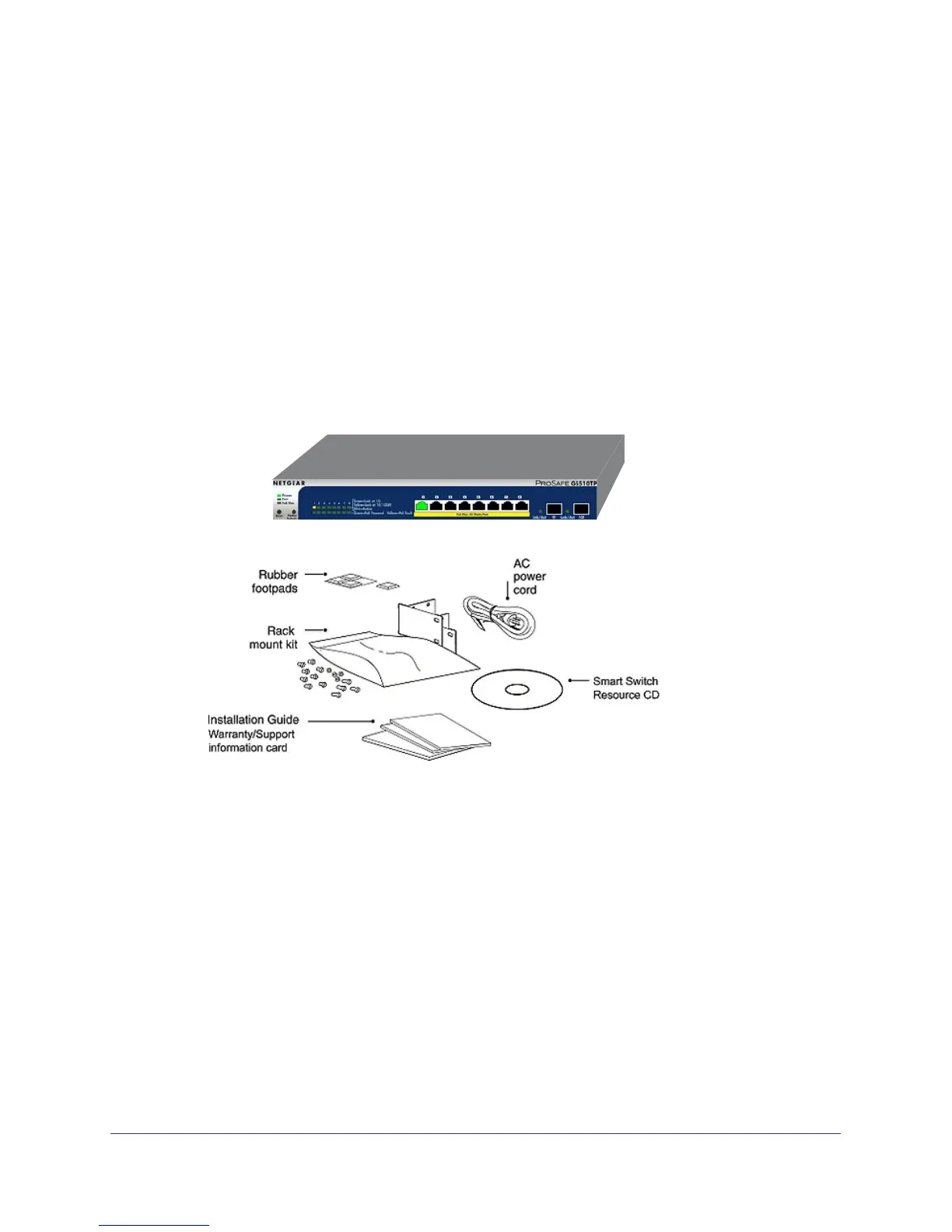 • Smart Switch Resource CD with the Netgear Smart Control Center and User’s manual
