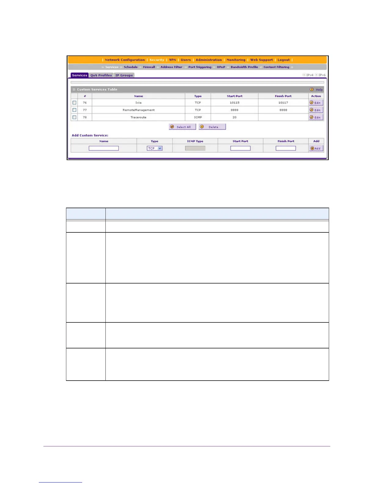 1. In the Custom Services table, click the Edit table button to the right of the service that