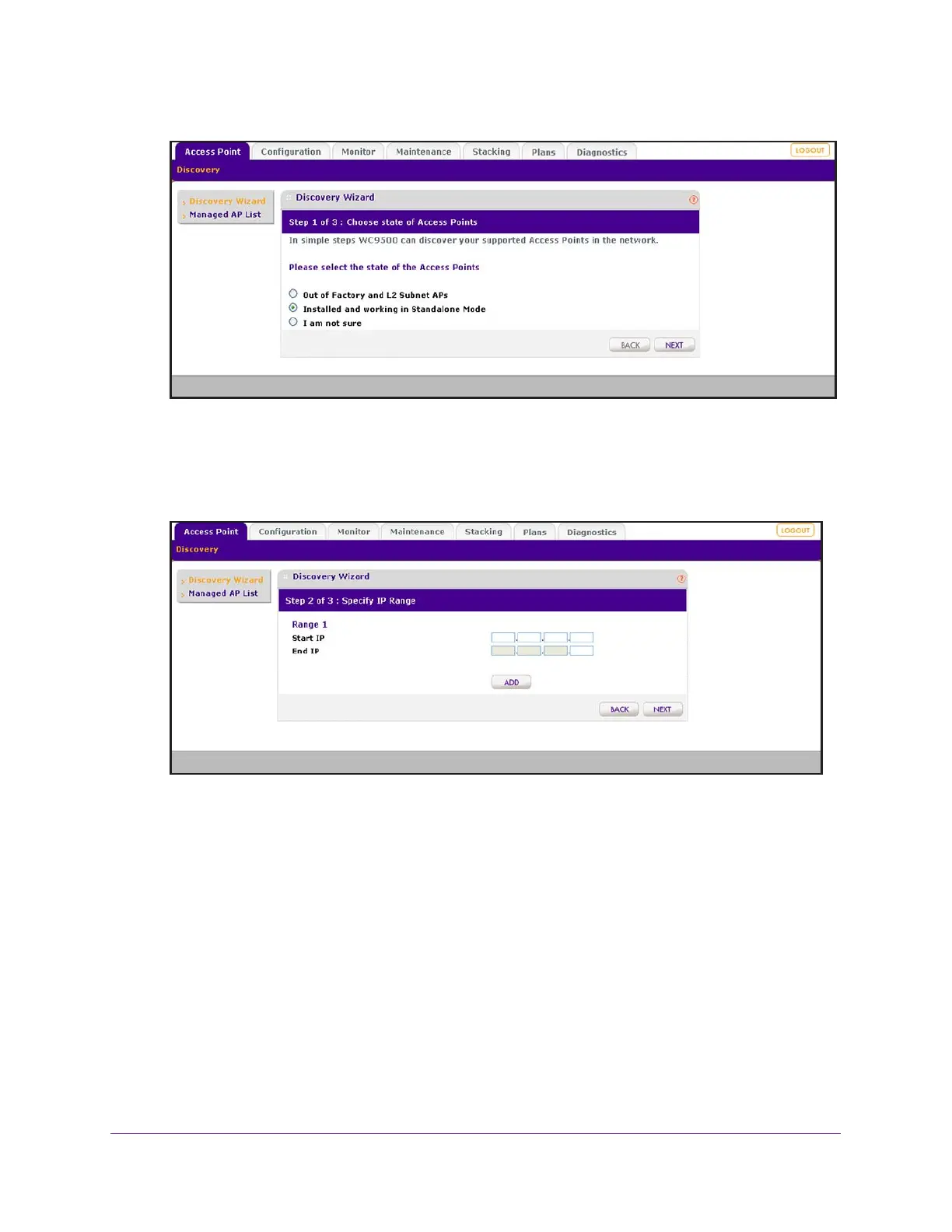 8. To add more IP address ranges for the wireless controller to search in, do the following: