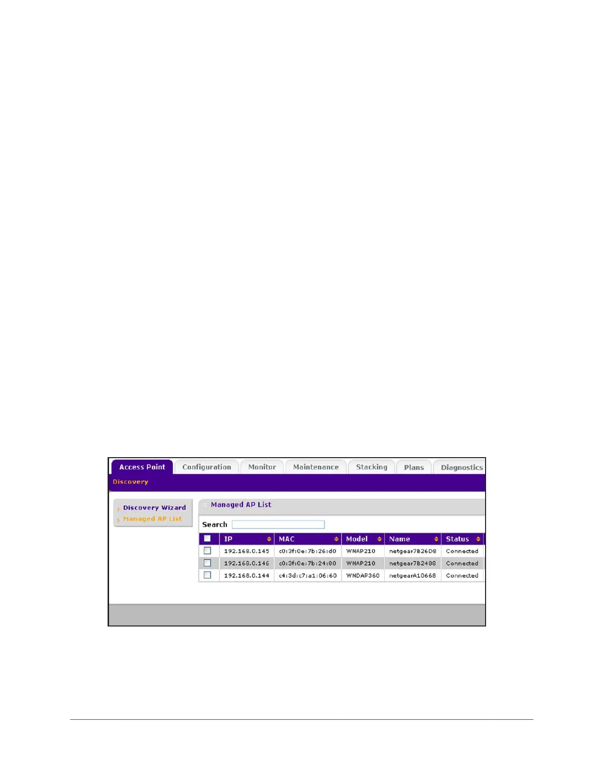 The Managed AP List page displays. Because this page is wide, it is shown in the
