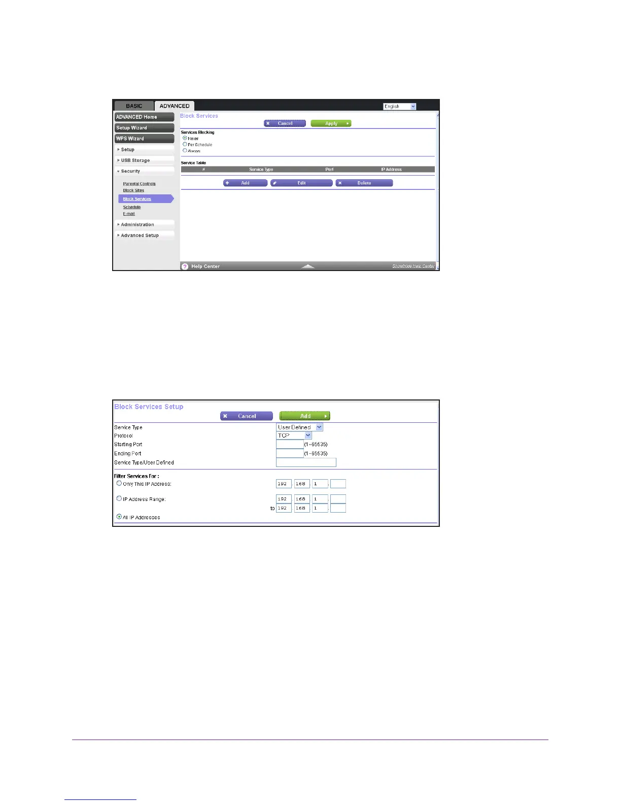 • Per Schedule. Select this radio button to block the services based on a schedule.