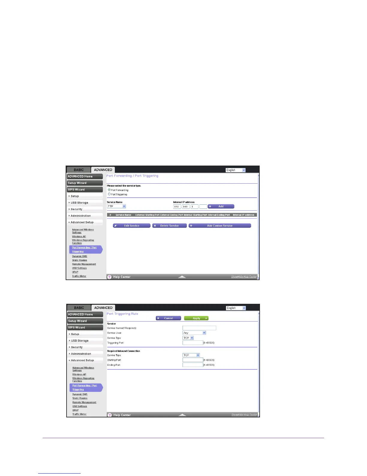 ANCED > Advanced Setup > Port Forwarding/Port Triggering.