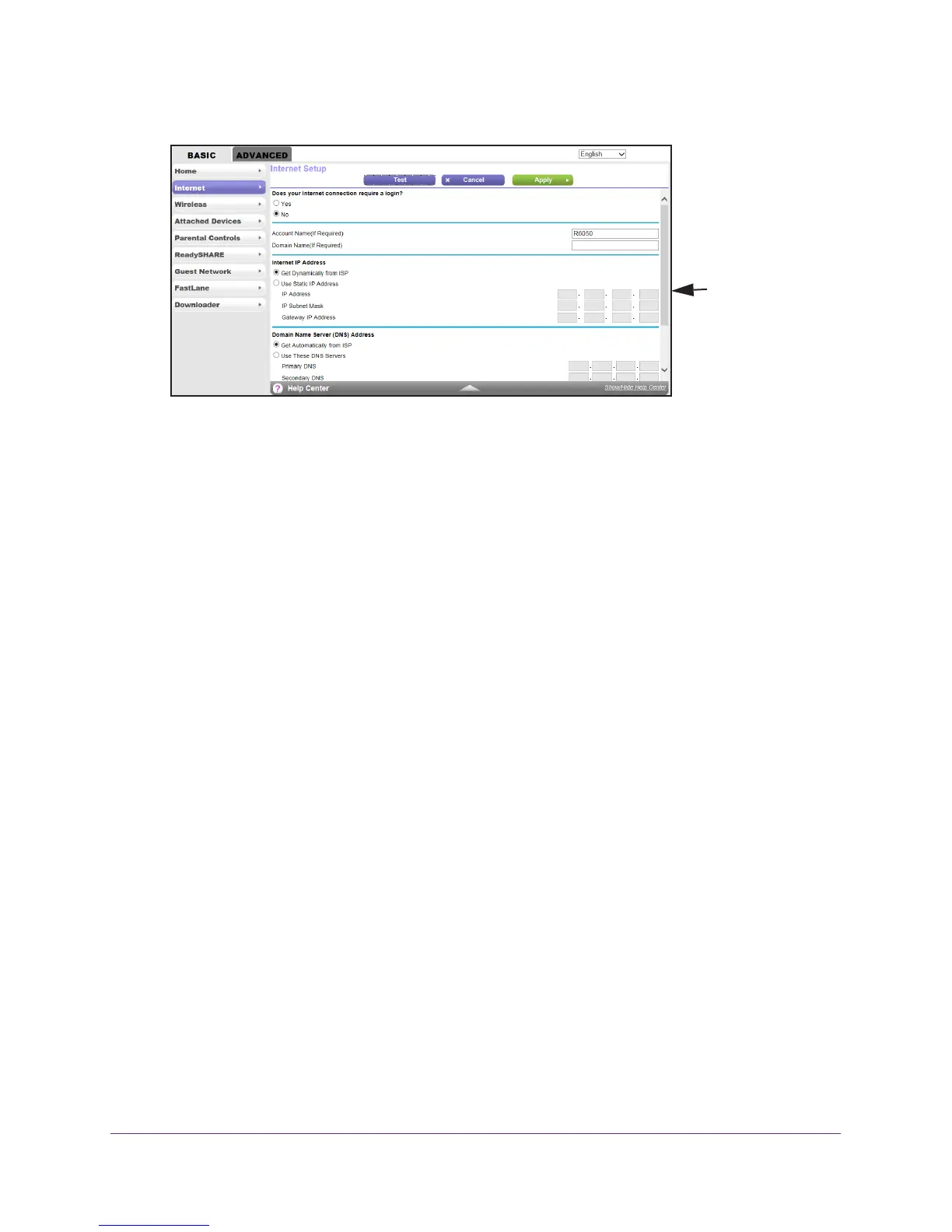 5. For the Does your Internet connection require a login setting, leave the No radio button