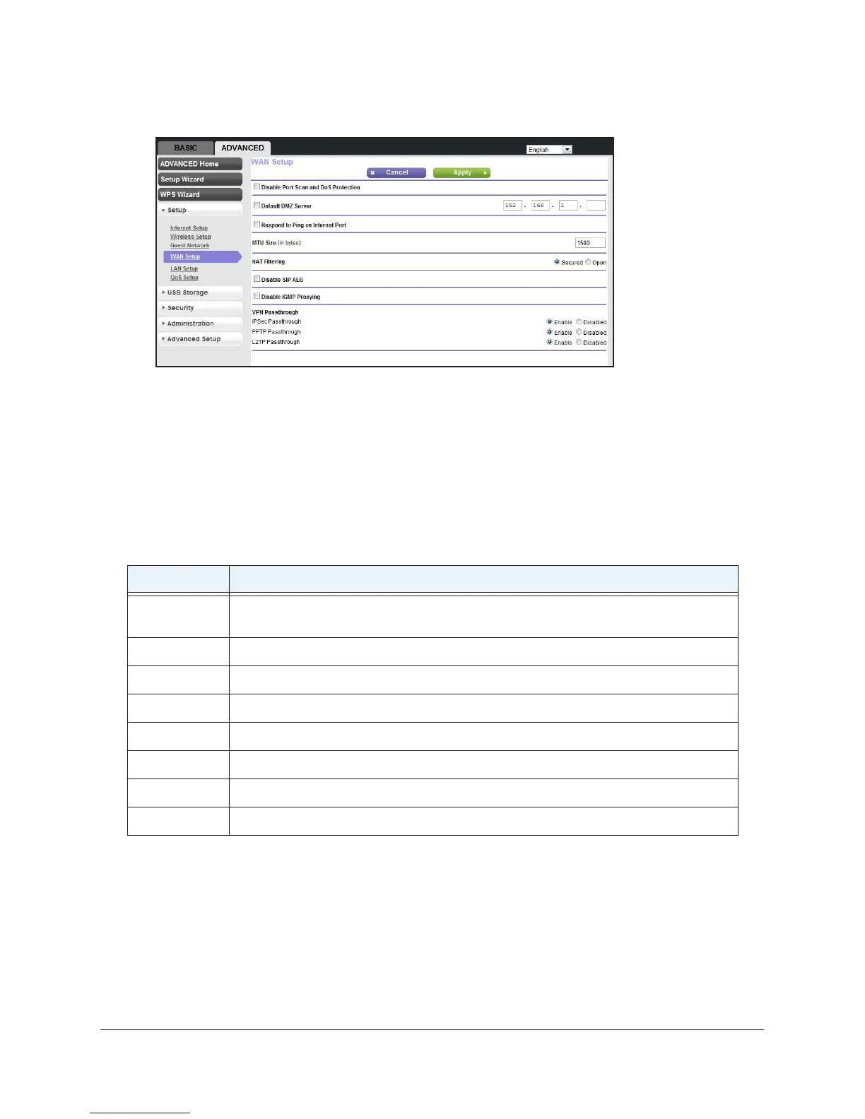 4. Select ADVANCED > Setup > WAN Setup.