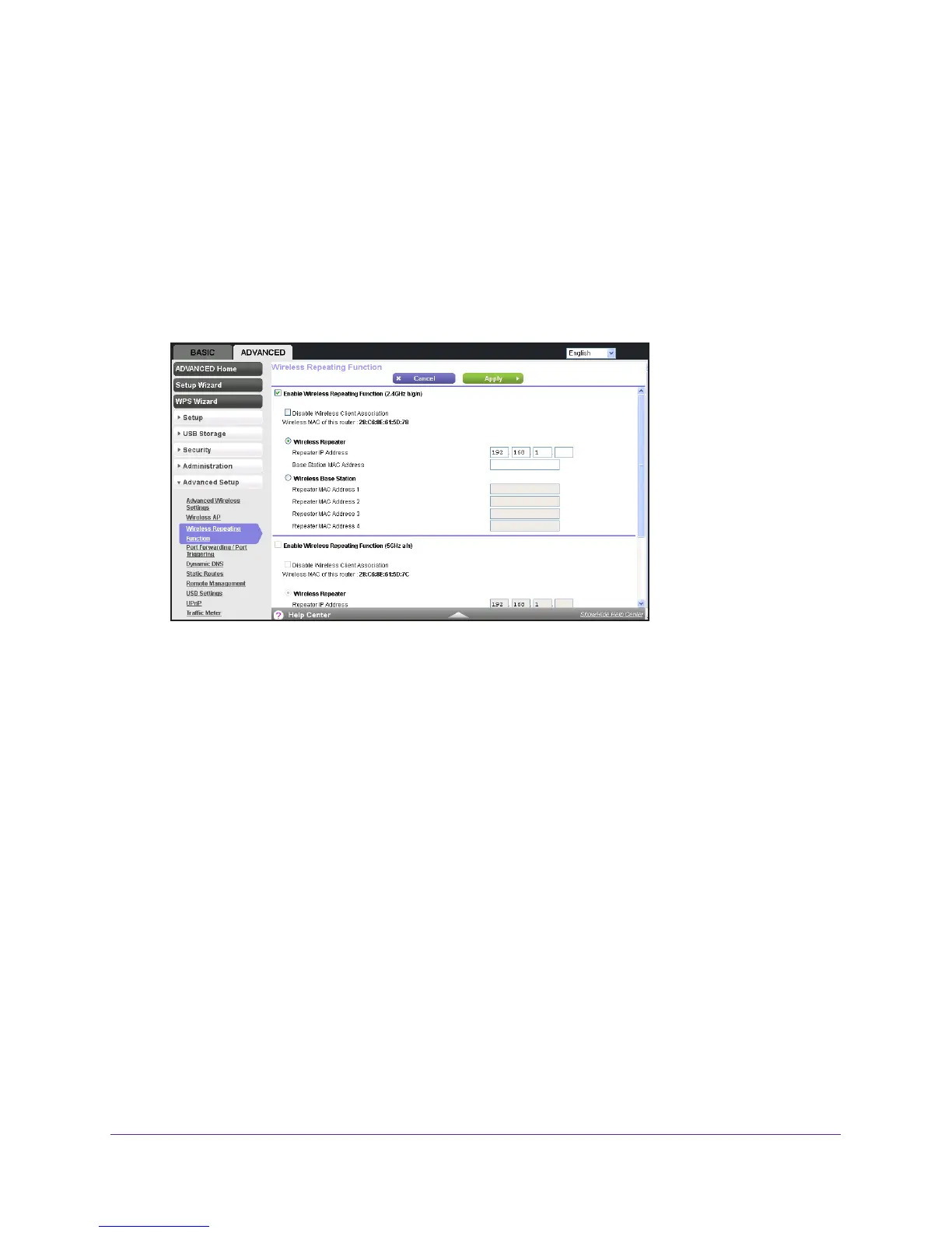 ANCED > Advanced Setup > Wireless Repeating Function.