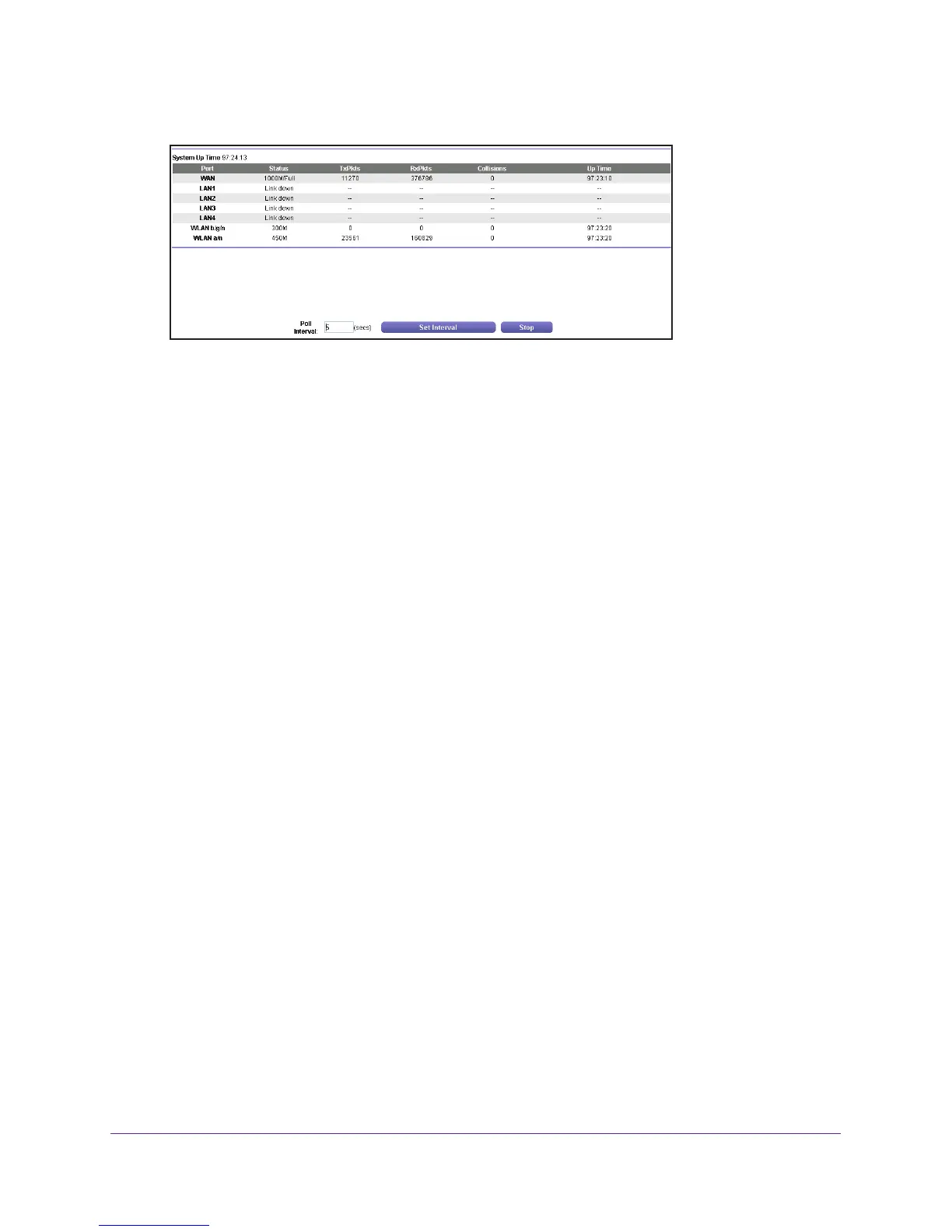 The statistics for the WAN (Internet) and LAN (Ethernet) ports. For each port,