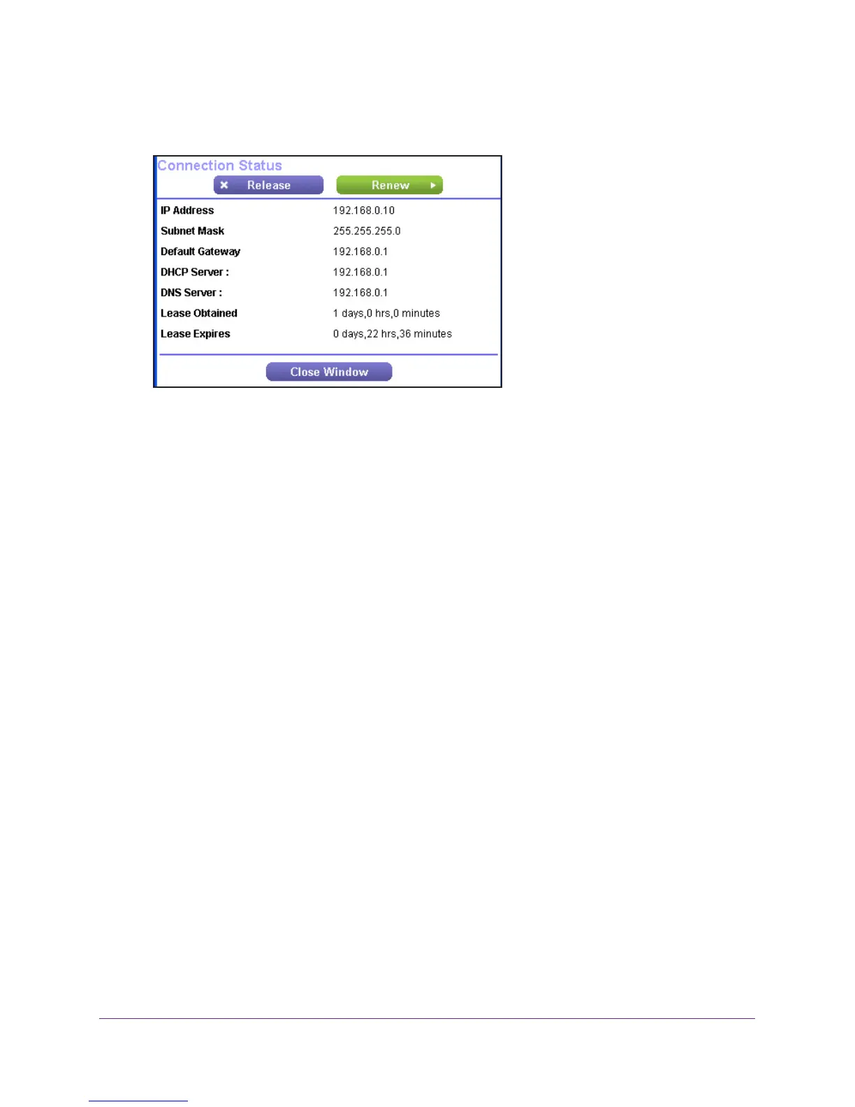 The content of the Connection Status pop-up screen depends on the type of connection.