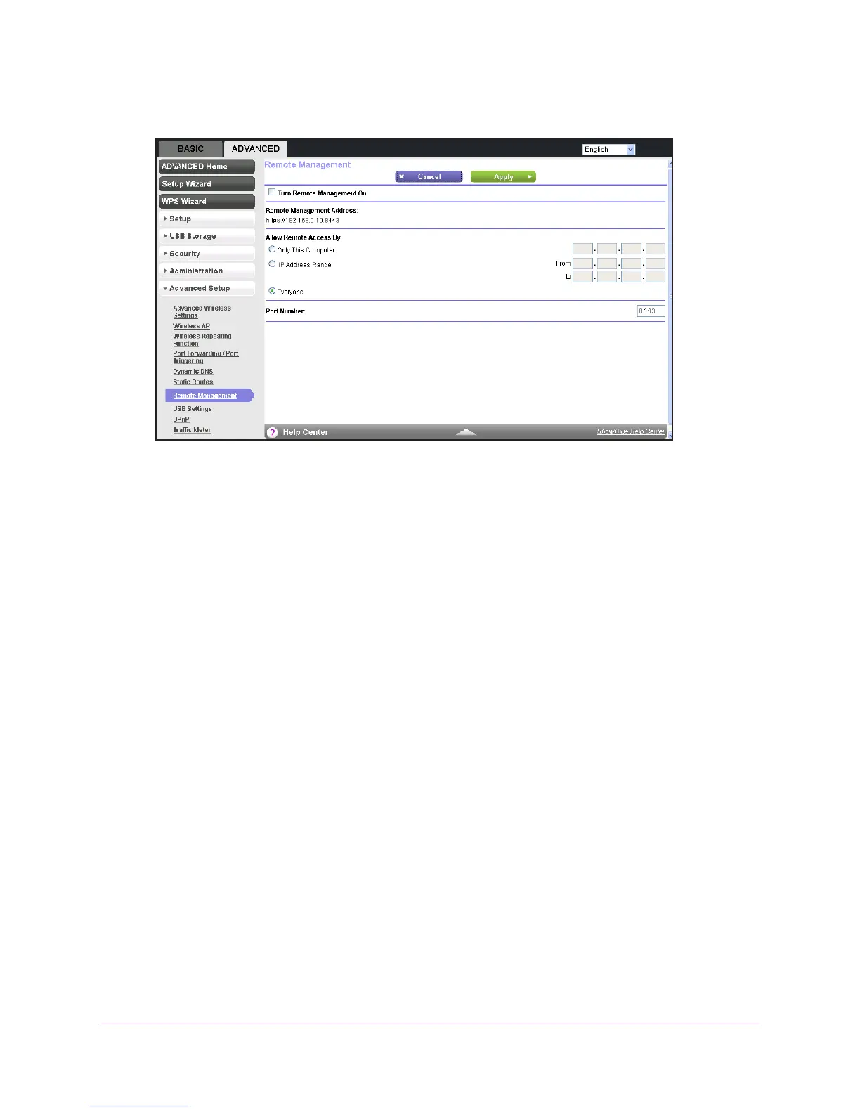 4. Select ADVANCED > Advanced Setup > Remote Management.