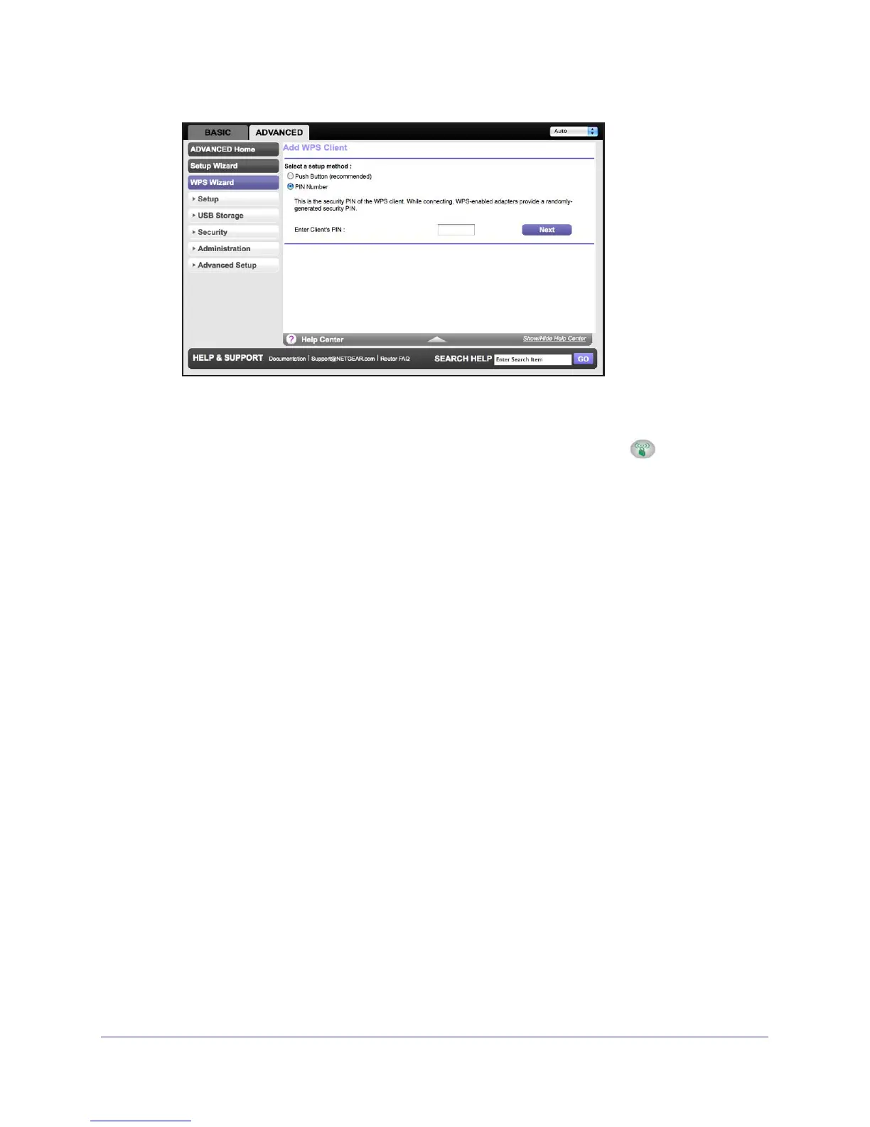 Within 2 minutes, go to the client device and use its WPS software to join the network