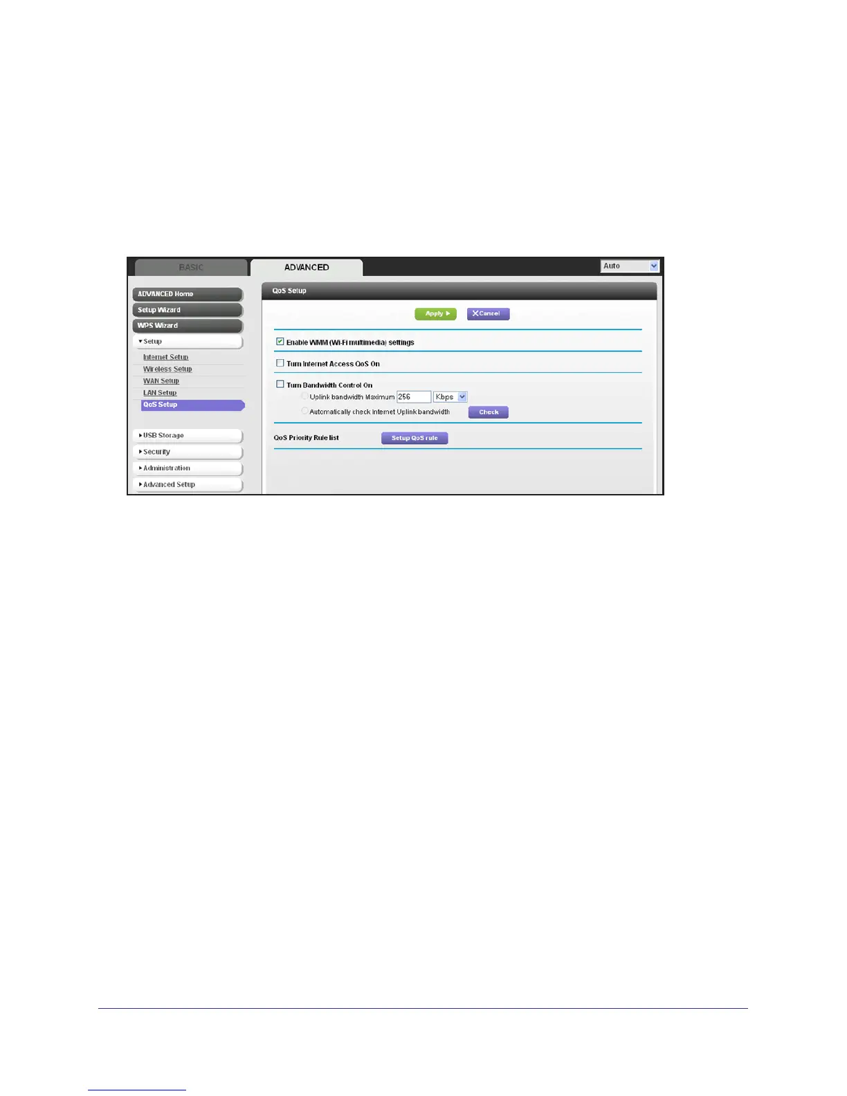 the Internet connection. To configure QoS, use the QoS Setup screen.