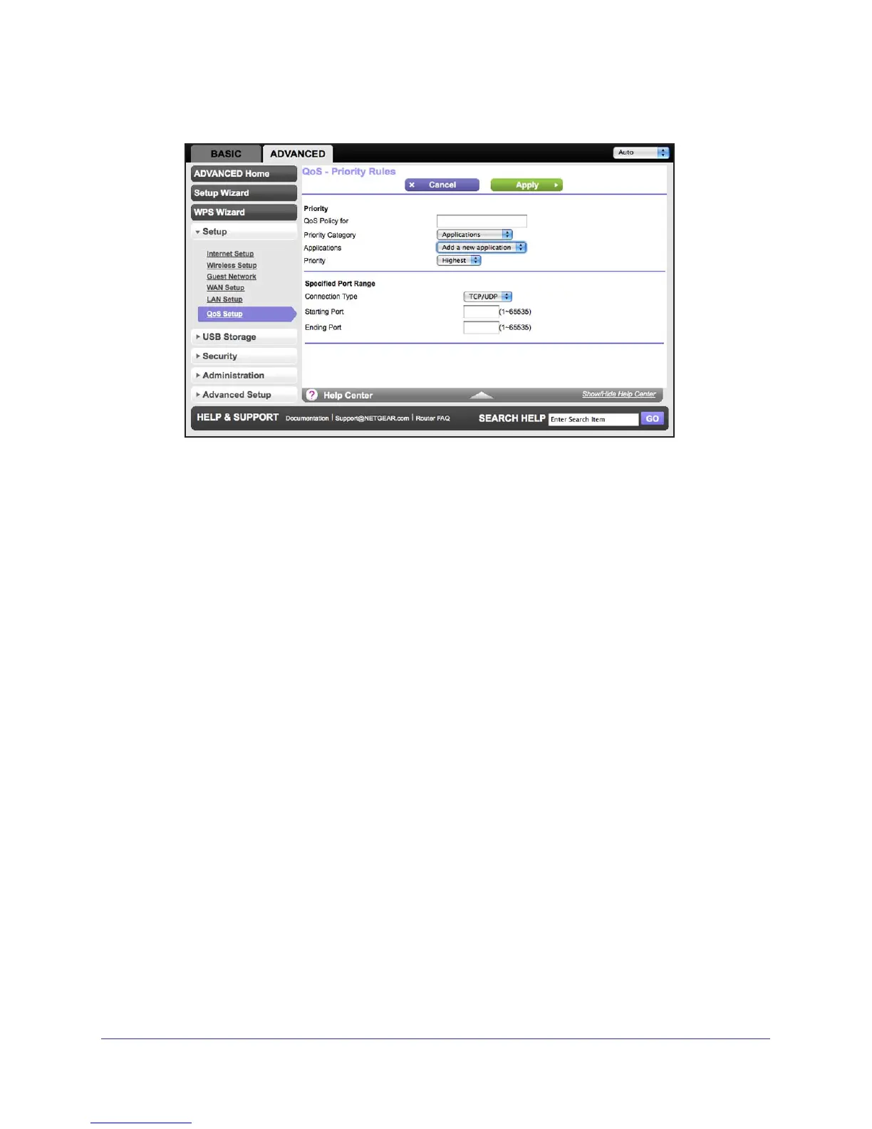 1. Select Advanced > Setup > QoS Setup to display the QoS Setup screen. Select the
