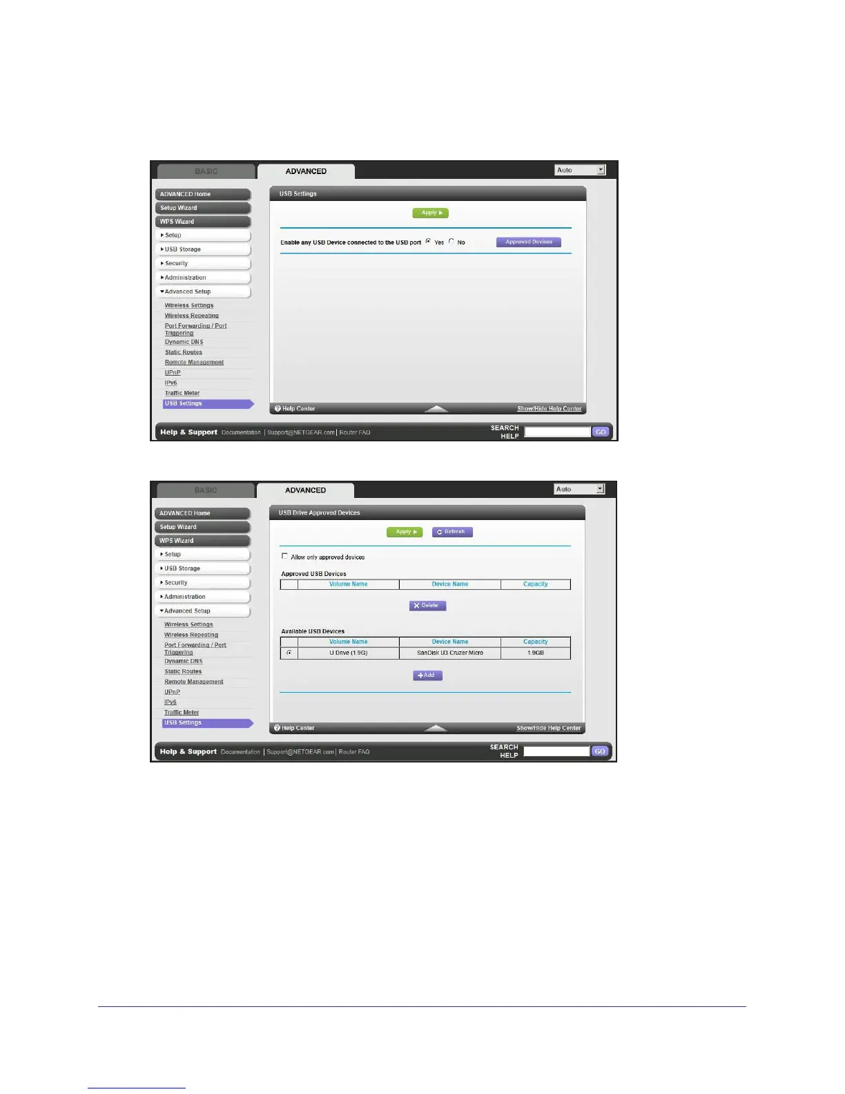 1. Select Advanced > Advanced Setup > USB Settings. The following screen displays: